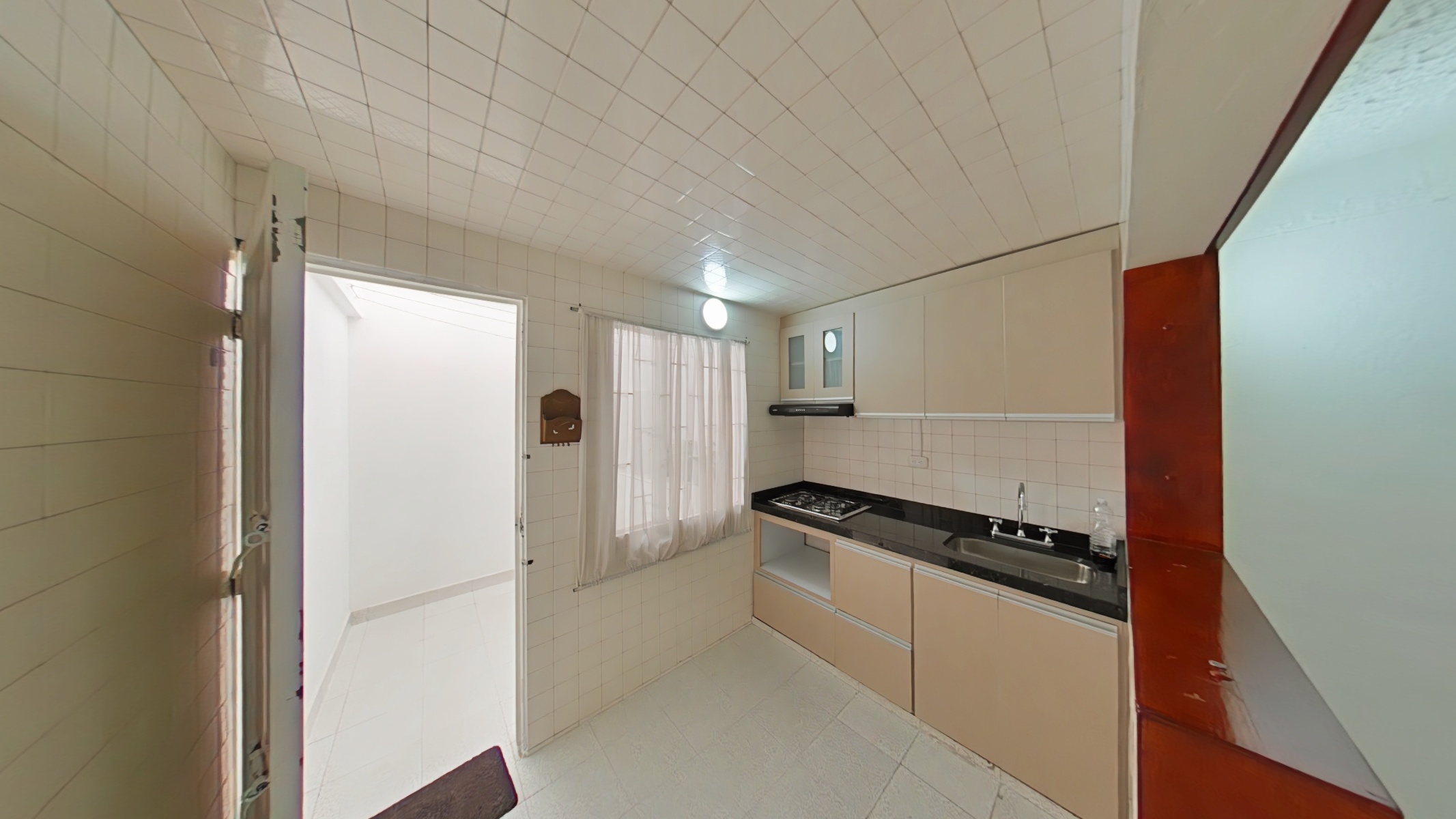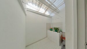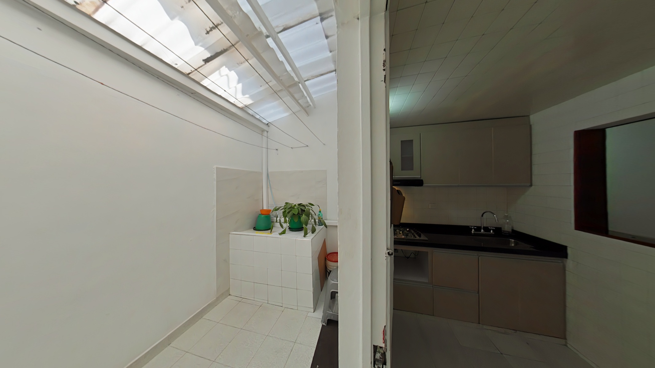 Primer nivel: sala-comedor, baño, cocina y patio, ideal para ventilación natural y zona de ropas.